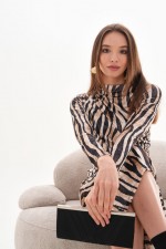 Zebra Desenli Kadife Elbise